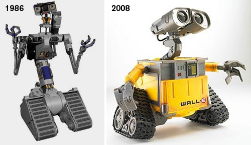 What a difference 22 years can make. For those of us old enough to remember Number 5, you’ll appreciate this post. I remember thinking that WALL•E reminded me of Short Circuit, but that was just me remembering in my head.